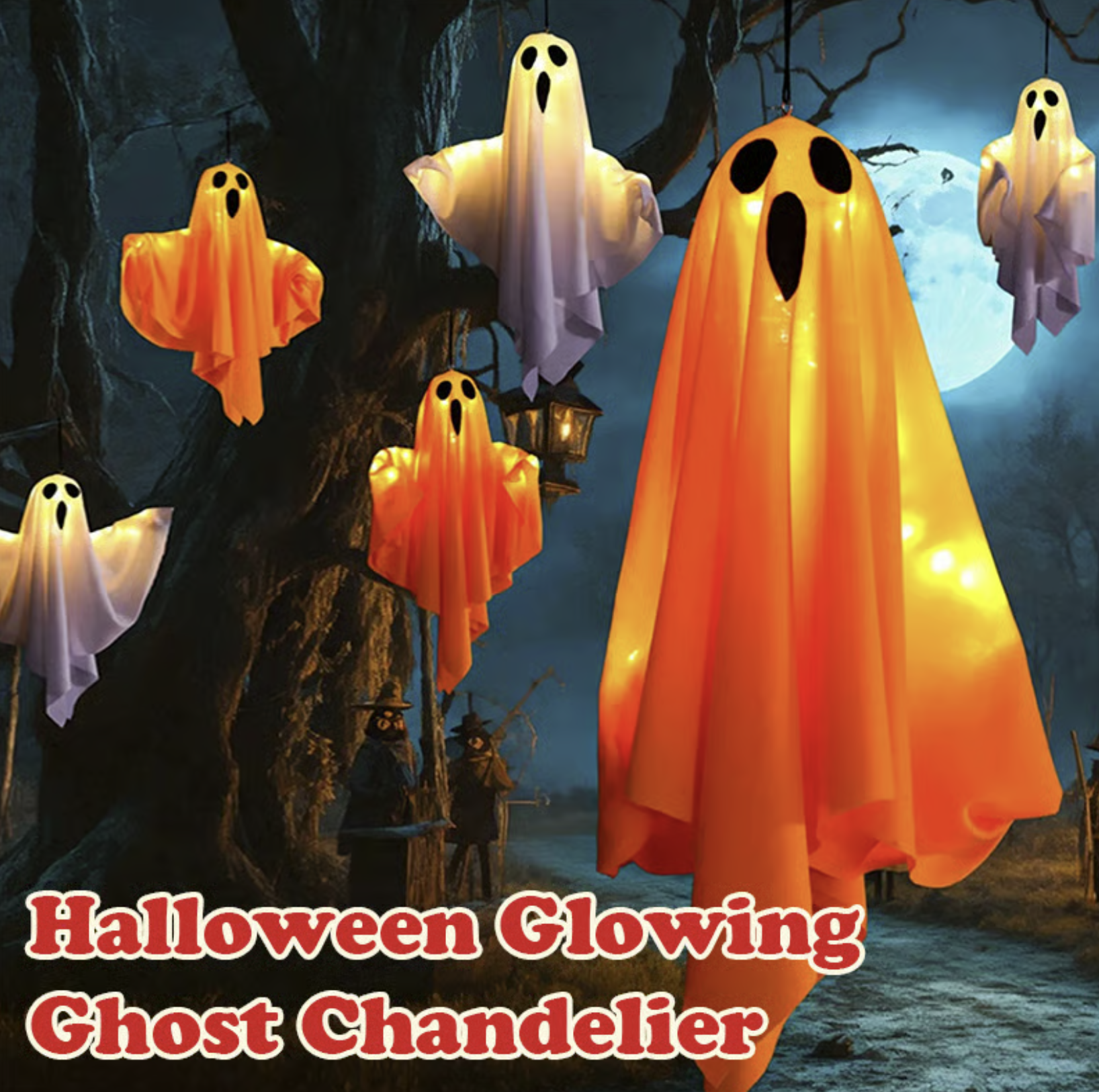 Hang the Halloween Glowing Ghost Chandelier anywhere to maximize your Halloween impact. ts bendable arms and lightweight design allow for creative and versatile placement on trees, front doors, porch poles, or balconies.